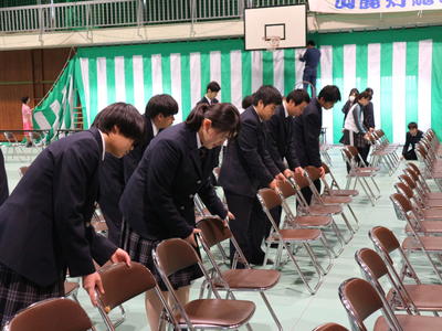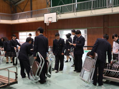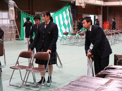 卒業式の会場設営で一度経験しているためか、とても手際よく設営ができました。協力してくれたみんな、ありがとう!