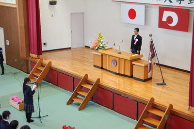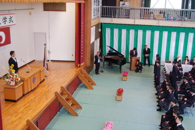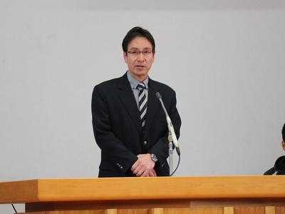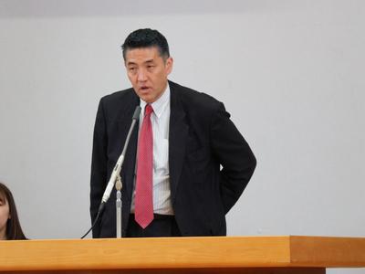 まずは新任式。12名の先生方を代表して、校長先生が挨拶をされました。