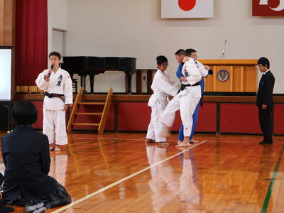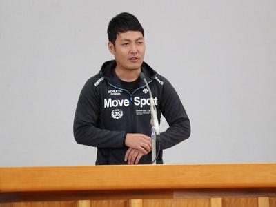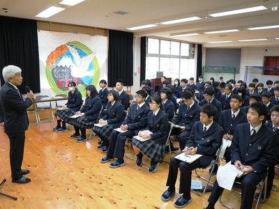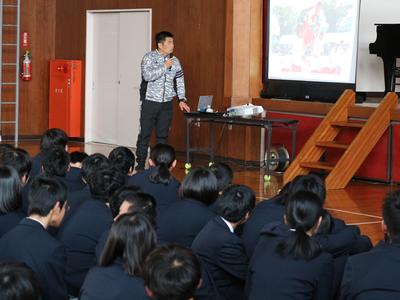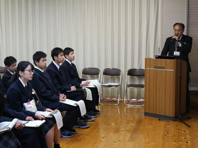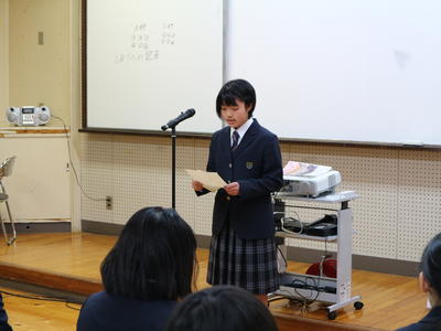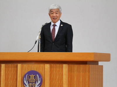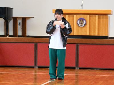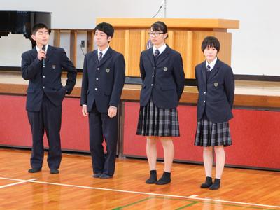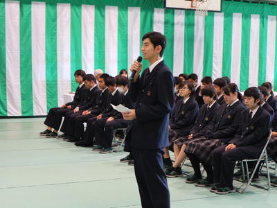 生徒を代表して、生徒会長が歓迎の言葉を述べました。