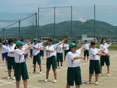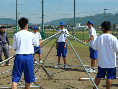 いよいよ明日が体育大会です! 今日はまず、会場作りを行いました。 日頃から実習で鍛えられているためか、てきぱきと働いてくれました。みんなの頑張りで、予定より早く会場作りが終わりました。ありがとう。 このあと、昨日雨で十分に出来なかった予行を、ショートバージョンで行いました。