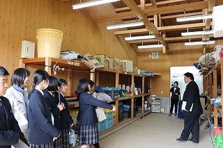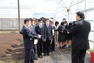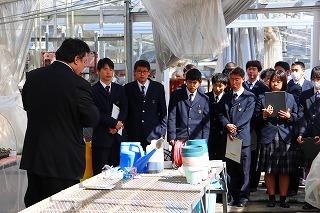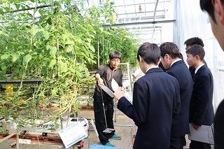 つぎに、興農園の系列会社である有限会社土の文化ファームの試験・試作農場でグローバルGAPを取得されています。 グローバルGAPを取得することで、販路拡大や経営の改善、教育効果の上昇、リスク管理など 様々な点で農場改革ができると話されました。 ここでは、本校卒業生の先輩からトマトの試験農場での取り組みを伺いました。 私たちの地域には、数多くの学習できる場所があります! 地域資源を活用した農業学習を展開し、生徒がより学びやすいように取り組みます。