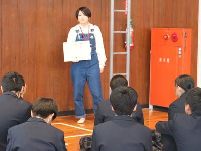 3月4日(月) 本校卒業生でJ-GAP指導員をされている高松さんを外部講師に招きました。 母校愛にあふれて、後輩(生徒)たちに分かりやすく説明をして頂きました。 その後、それぞれの専攻の場所に行き、どこにリスクが潜んでいるのか?? 質問を交えながら、後輩(生徒)に教えて頂きました。 この日は、生徒はもちろんながら、多くの先生も2年生のGAP学習に向けて 参加していました。 今回、講師を快く引き受けて頂いた高松さんからは、 今後のGAP学習にも、少しずつでもいいので、意欲的に取り組んで欲しいな、そして、GAPの先にある、PDCAを回せる考えられる子達になってほしいなぁと思います。