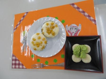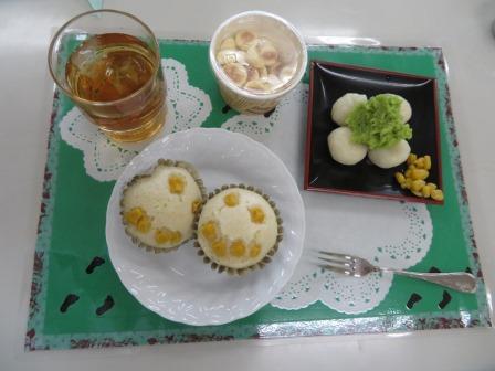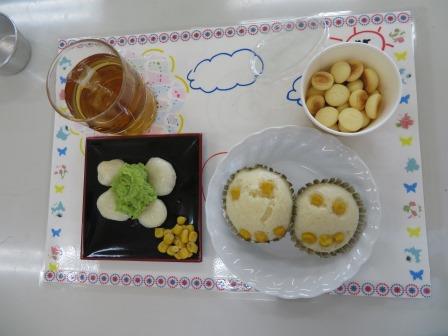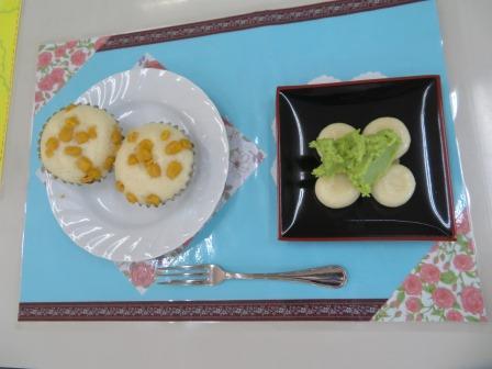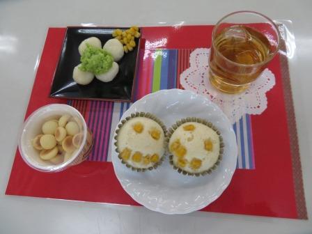 「たまごボーロ」「豆腐白玉団子のずんだもち」「コーン蒸しパン」の3品を作りました。