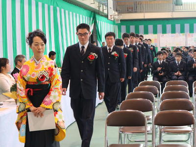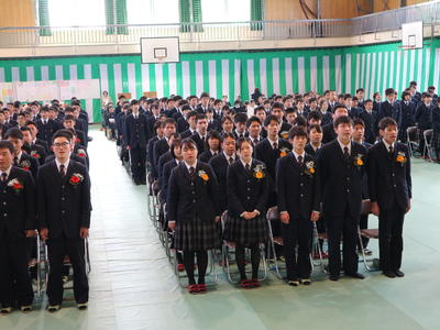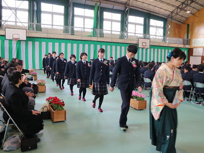 卒業生退場 このあと、各クラス教室にて、最後のホームルーが行われました。 |