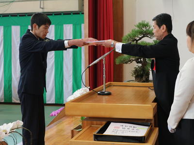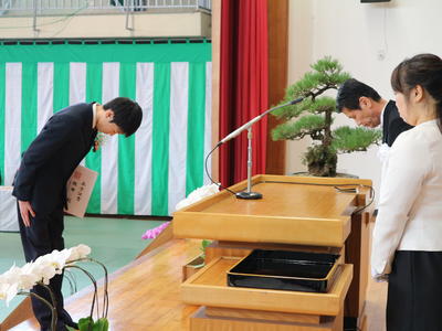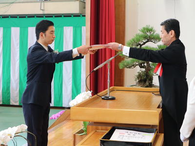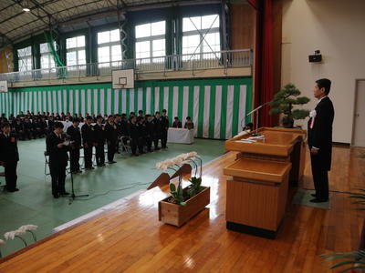朝から,霧に包まれていましたが、10時の開会時には霧もはれ、晴天の元、卒業式が行われ、70人が巣立って行きました。