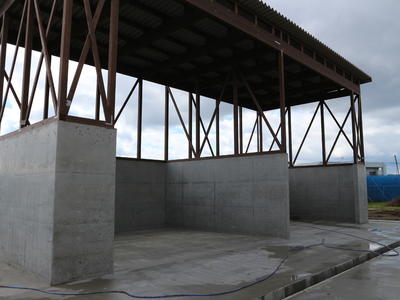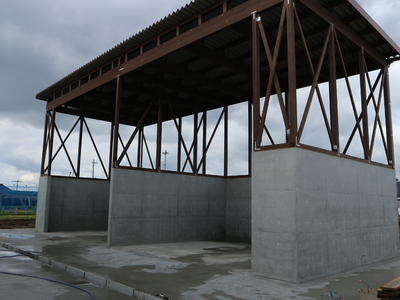 以前ご紹介したとおり、本校の馬見塚農場では温室と堆肥舎の新築工事が行われています。 「どれぐらいできたのかな?」と思ったので、見に行ってみました。 温室はもうできあがっていました。 きれいでしょ。中はこんな感じです。 制御盤が設置してあり いろいろな調節が自動で行われるのだそうです。 堆肥舎ももうすぐ完成のようです。 最後の仕上げがされているようでした。かなり大型です。 |