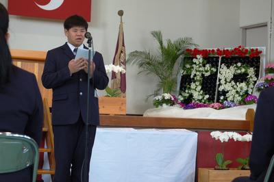 今年の卒業式の壇上を飾った花ですが「祝」と書かれていたのに