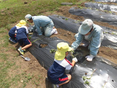 【生活科学科】保育園との交流学習~サツマイモ苗植え~