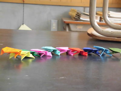 最後に、試験管を針金で固定したら完成。 作品は、壁に掛けて飾ります。 夏らしくて良い感じに仕上がりました。 |