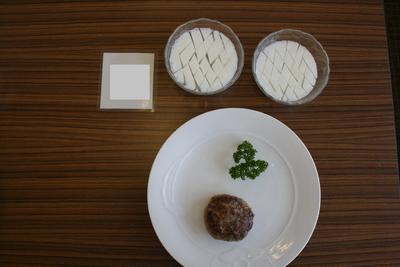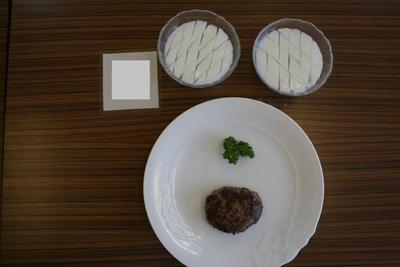 2年生は毎週月曜日はハンバーグと牛奶豆腐。