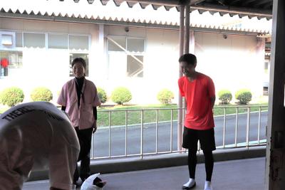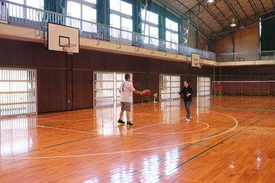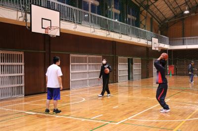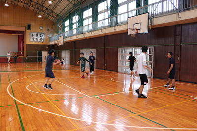 日々の活動では、体育館ではパス・シュート・ゲームなどの練習、ラーニングルームや武道場では体幹トレーニングや筋トレをしました。また、ランニングもしました。