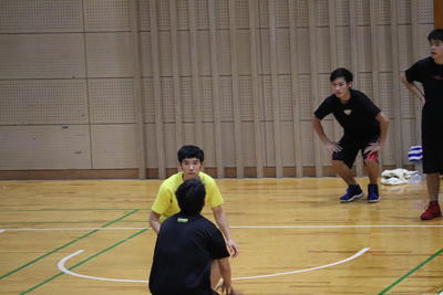 バックシュートの説明。顧問の先生からバックシュートを教えてもらっています。