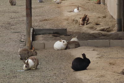 なんと、施設内にはウサギが放し飼いに!かわいい~とあちらこちらから本校生徒の声が