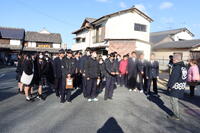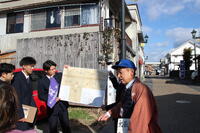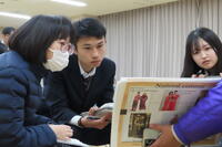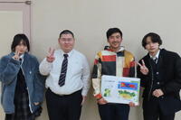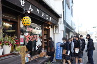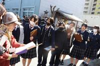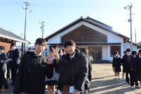 小雪がちらつく冬らしい天気だった1月22日(木)に1年生が総合的な探究の時間(以下、「総探」)で山鹿市街地へ校外活動に出かけました(本校マスコットキャラクターの「みのる」も一緒に