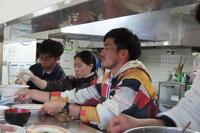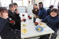 代表生徒が「いただきま~す」の号令を元気よくかけてくれました。皆さん、お腹がすいていたのか、勢いよく食べます。研修生や職員の方がおかわりをすすめてくださったり、後片付けも率先してやってくださいました。よく気付き、よく動かれる研修生。こういう姿も私たちのお手本です