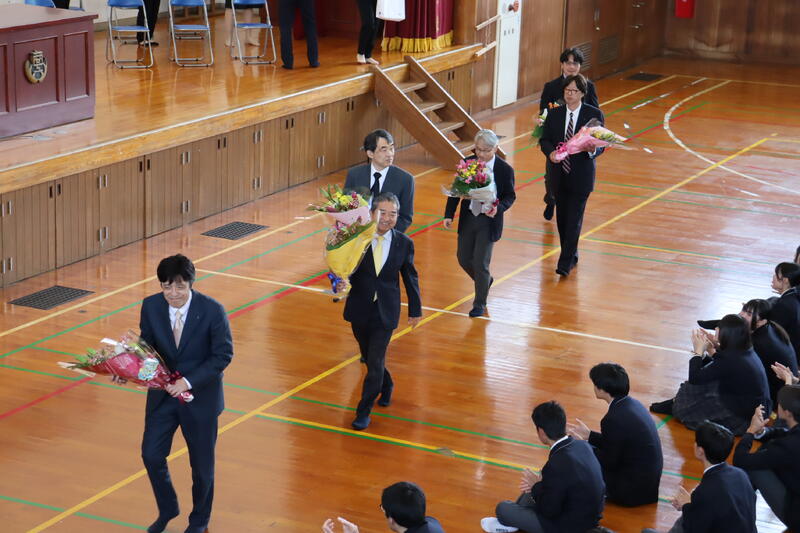 本校体育館にて退任式が実施されました。