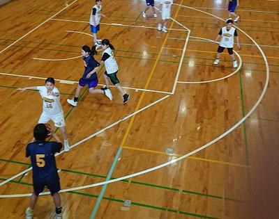 男子は全く歯が立たず、とても良い経験となりました。しかし、自分たちが取り組んでいることには挑戦でき、少しずつですがバスケットらしい展開ができるようになってきました。イージーなレイアップシュートやゴール下のシュートが大きな課題です。