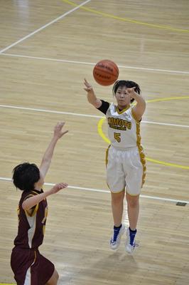 女子は有明高校と対戦しました。前半19-11と8点リードで折り返しましたが、第3クオータの出だしで集中力を欠き開始早々同点に追いつかれ、23-27で第4クオーターを迎えました。最後まで自分たちのバスケットをし続け、何度もノーマークのシュートを放ちましたが、リングに嫌われてしまい、31-39で敗れました。