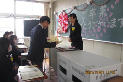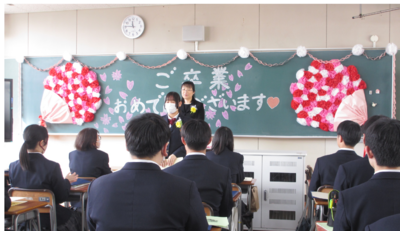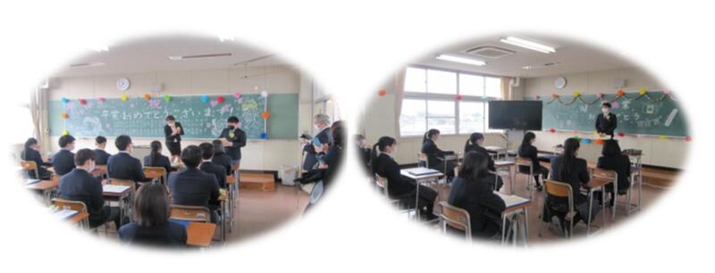 令和5年3月1日(水)、3年生がそれぞれの道に旅立っていきました。写真は卒業式後のHRの風景です。