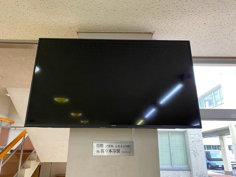 令和5年2月14日(火)、株式会社佐々木冷菓 様より、大型ディスプレイを寄贈していただきました。2月24日(金)に図書館前のフロアへの設置工事が完了し、3月1日(水)の卒業式での御披露目に間に合わせることができました。