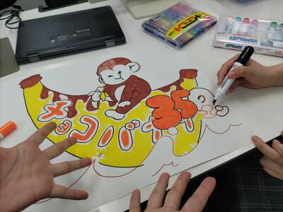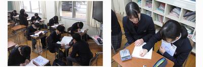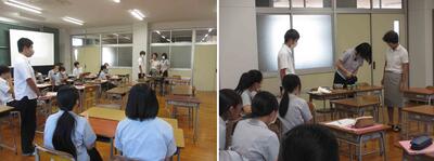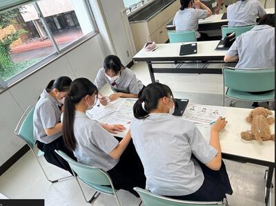色の印象についての説明や、色の配色や文字のデザインでも印象が変わることを、それぞれのデザインでわかりやすく説明していただき、生徒は楽しく学ぶことができました。