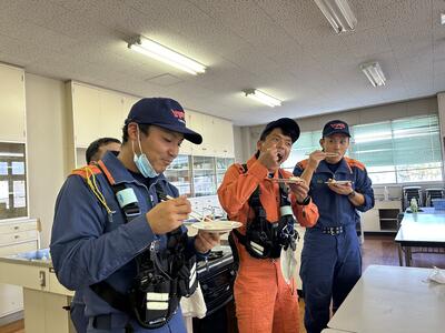 先生方や救命講習会の指導で来られた消防士の方にも試食してもらい、