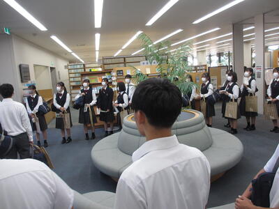 学園大学では、オリエンテーションと大学紹介のあとにキャンパスツアーを実施して頂きました。大学の広さや施設が充実していることに驚き、憧れの気持ちを抱きました。e-キャンパスセンターには高校とは比べ物にならない最新のコンピュータが数多く設置されており、授業や自習で使用ができるとのことでした。また、大学が誇る図書館にも案内いただき、学生さんたちが勉強している姿を目の当たりにし、大変良い刺激となりました。