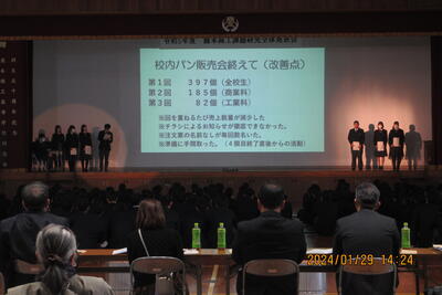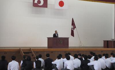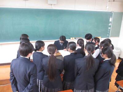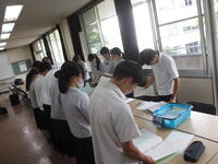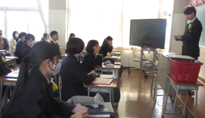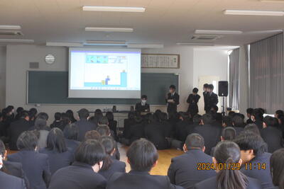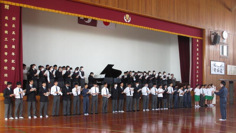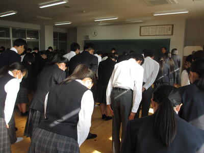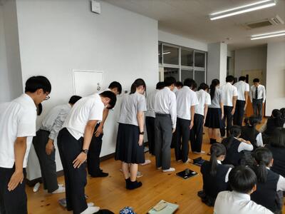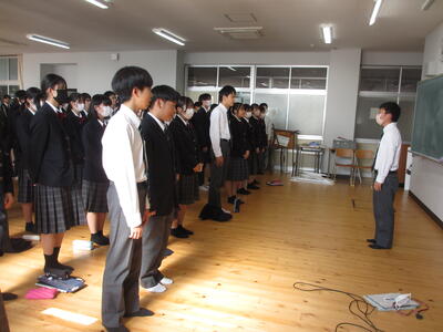 商業科と情報管理科では科集会が行われ、あいさつの練習をしました。