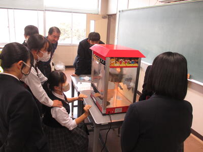 鶴屋百貨店では、初めに会社概要等の説明がありました。生徒たちは普段学校で学習していることとの繋がりに気づき、本物のおもてなしやサービスの在り方を深く学ぶことができました。楽しく真剣に話を聞いている姿が印象的でした。その後館内の施設見学をし、6階の催事場で行われている「台湾フェア」で実際に買い物をすることができました。生徒たちの目はキラキラしていてこのような機会を頂けたことを大変嬉しく思いました。