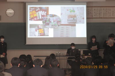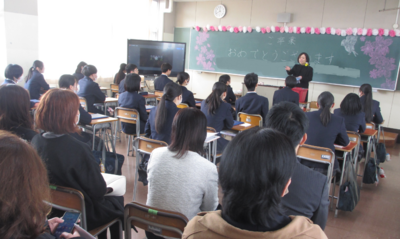 商業科・情報管理科の3年生に向けてデザイン講話が行われました。