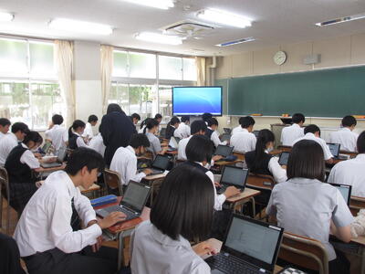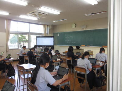 テストに向けて頑張っています。また、商業科電算室のデスクトップPCがノートPCへと変わりました。