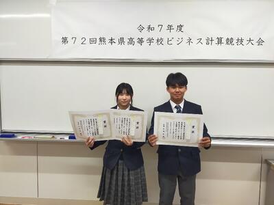 令和7年度第72回熊本県高等学校ビジネス計算競技大会が、12月13日(土)に熊本市立千原台高等学校で行われ、本校から2名の生徒が出場しました。