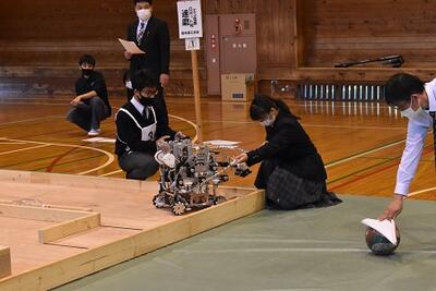 令和4年11月5日(土)、熊本工業高校で標記の大会が行われました。昨年度の大会は、予選2位で順調に予選を通過しましたが、決勝トーナメント一回戦で序盤のミスを挽回することができずに敗退。アイデア賞はいただきましたが、全国大会への出場はかないませんでした。し、しか~し、今年度は標記の見出しにあるように「熊本県大会3位」の実績を残すことができました。熊本県大会は、今年の競技規則で、来年度(令和5年度)の全国大会の出場権利を決める大切な大会となり、現在、熊本県の出場枠3番目となります。来年度の全国大会は「福井県」であり、令和5年4月に競技の実施規則が発表され、例年7月中旬頃に各都道府県の出場台数が決定されます。ちなみに今年の青森県で開催された全国大会の出場台数は4台であったので、来年度の出場はクリアしているように思えますが、開催県の判断次第です。私たちは来年度の福井大会に向けて、準備を進めていく予定です。これからも頑張りますので、応援のほどよろしくお願いします。