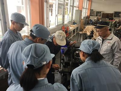 10月28日(月)、厚生労働省の委託事業である「若年技能者人材育成支援等事業ものづくりマイスター派遣」による実技指導講習会を行いました。12月に行われる技能検定(普通旋盤作業3級)に本校から6人が挑戦します。その実技指導をものづくりマイスターである濱﨑先生から指導していただきました。検定まであと4回指導していただく予定です。全員合格できるようにがんばりたいと思います。