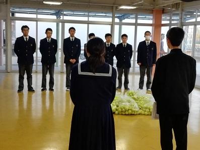 1月21日(火)、山鹿中学校生徒会から9月に依頼を受けていた1500個のテニスボールの加工を終え、贈呈しました。本校が取り組んでいる技術ボランティア活動の一環です。9月から課題研究の授業や放課後、週末を利用して加工してきました。机や椅子に取りつけ、大切に使っていただければと思います。山鹿中生徒会から感謝状もいただきました。ありがとうございました。