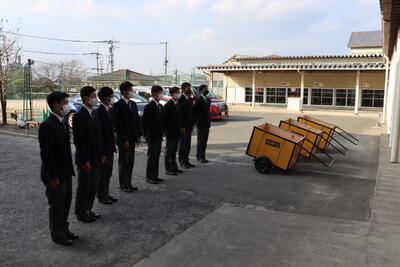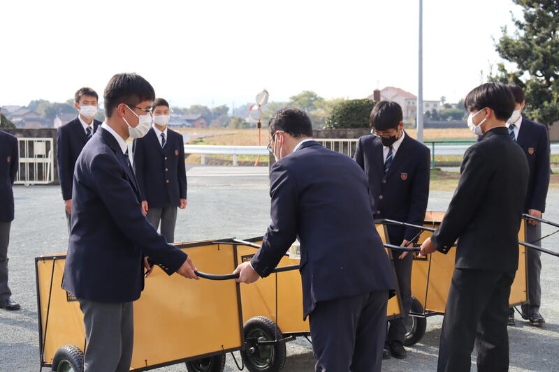 山鹿市立鹿本中学校へのリヤカー寄贈式