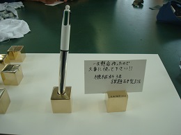 職員室で使用しているペーパーウェイトが錆びていたため、一からデザインし製作しました。やすりがけという、手間暇がかかる作業でしたが丁寧に作業し、自分が映るまで磨きました。大事に使ってもらえると嬉しいです。