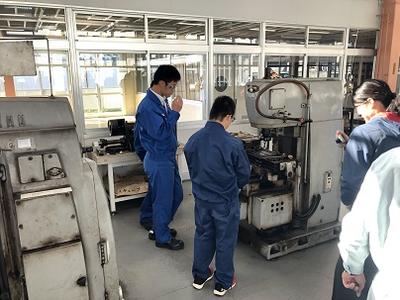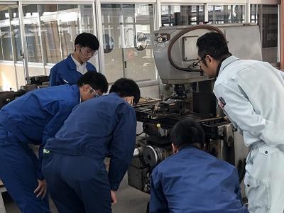 12月4日(水)に本校機械実習棟にて、高等部山鹿分教室の3年生7人と電子機械3年生7人が、3年実習の一つの項目である「フライス削り」の実習で交流を行いました。