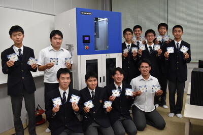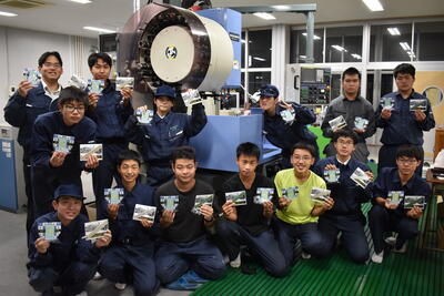 この記念品は、本校に昨年度末導入された最新設備の「マシニングセンター」と「3Dプリンター」で製作したものです。この記念品を製作することを通して、鹿本中学校の地域連携の大切さを感じることができました。また、この作品製作を通して、私たちの技術力の向上ができたことに感謝しています。今後とも、ものづくりを通して人のために貢献できる取り組みを続けていきたいと思います。