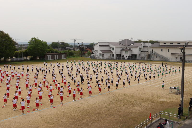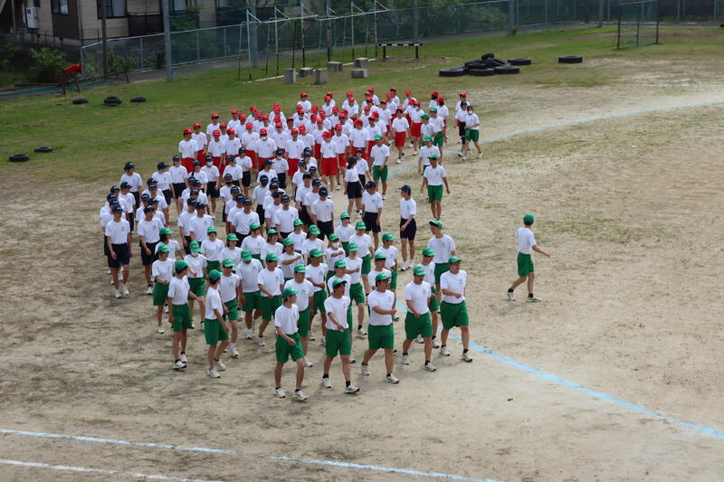 午前中は通常授業を行い、午後からは全校生徒がグラウンドに集合。