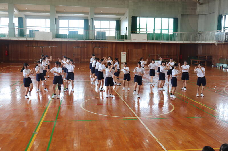 その後は、本校の伝統である「商工体操」や、体育大会恒例の「ダンス練習」へと続き、汗を光らせながらも楽しげな声がグラウンドに響いていました。