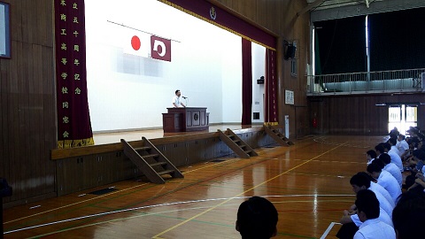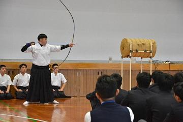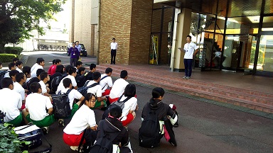 校長先生から激励の言葉があり、弓道部主将が選手宣誓を行いました。各部活動の主将が抱負を述べました。早い競技では明日から試合が始まります。