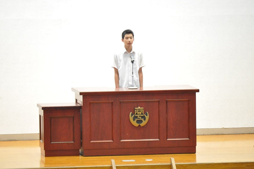 生徒会長1人、副会長2人が立候補し、定数内ではありますが、演説を行いました。また、生徒会委員には定数4人に対して、7人の立候補がありました。それぞれ7人が立候補に至った経緯や理想とする学校の在り方、取り組んでみたいことなどについて演説を行いました。