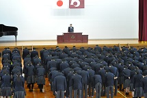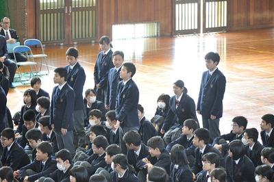 その後、教務部から1年間、無欠席が215人(348人在学)で、62%の人が無欠席で登校している現状を話されました。表彰式でも、表彰を受ける人がたくさんいました。来年度も色々なことにこつこつと努力を重ね、自信につなげていく活動を続けていきましょう。