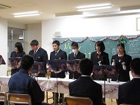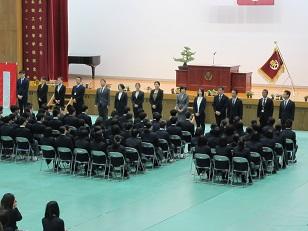 生徒代表謝辞では機械科3年山下くんが「先日の菊池市議選の投票に行った。難しいイメージがあったけど、説明がしっかりされ投票は簡単にできると感じた。自分たちも責任を持って投票行動をとる必要があると感じた。」と感想を述べました。