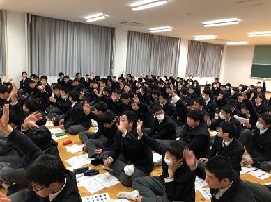 その後、担任の先生や主任・主事の先生方の発表がありました。生徒の皆さんが一喜一憂してる姿が印象的でした。最後に教務部、進路部、生徒部から今年の目標や方向性について話がありました。