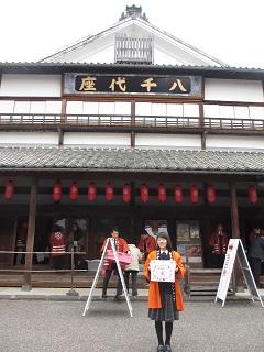 平成31年2月9日(土)に、マーケティング部の商業科2年3名が『ニッポンたからものプロジェクト』(八千代座:山鹿市山鹿)で販売実習を行いました。このプロジェクトは、2018年度においては全国11県で開催されているもので、山鹿市では菊池川流域のたからものを発見することをテーマに、八千代座でトーク、地域芸能、プロによる伝統芸能、料理など、スペシャルライブが行われました。