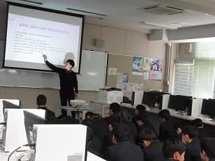 はじめに、身近に利用しているSNSの状況について話がありました。鹿本商工で検索したらツイッターのアカウントがたくさん出てきたそうです。個人情報が特定されるようなものは無かったそうですが、かなり多くのアカウントが紹介されました。生徒達からは笑い声が聞こえてきましたが、SNSは全世界70億人が見られる状況にあります。 今回の講演で改めて、SNSの利用の仕方について考える良いきっかけとなりました。先を見据えた行動をしていきたいと思います。