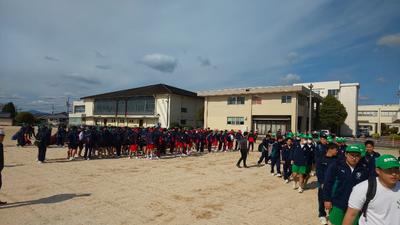 バスケットボール主将で生徒会長の竹下颯人くんを先頭に、元気よく行進してきました。各競技で熱戦を繰り広げます。熱い応援をよろしくお願いします。