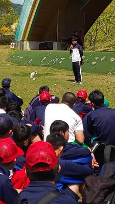 約2時間かけてあんずの丘(菊鹿町)に到着しました。開会のときの教頭先生のあいさつでは、野良猫も一緒に歓迎してくれました。これから各科、各団、分教室との交流を深めていきたいと思います。
